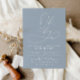 Modern simple white script dusty blue invite, text and colours can be personalised.