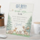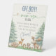 Oh Boy Mom-osa Bar Forest Animal Baby Shower Pedestal Sign. Add a touch of rustic charm to your 'Oh Boy!' baby shower with this lovely Mom-osa Bar sign. Illustrated with a heartwarming scene of rustic modern watercolor woodland forest animals, including a sleeping bear, a curious deer, a spiky hedgehog, a mischievous raccoon, a majestic moose, and a tiny mouse, this sign is as cute as it is functional. The customizable instructions – 'Pour Some Bubbly, Add Some Juice, Top With Fruit' – make it easy for guests to mix their drinks at you mimosa drink station. This chic sign is a perfect way to enhance your boho woodland baby shower theme and create a delightful beverage experience for all attendees.