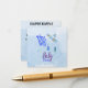 This enchanting design prominently features the delightful phrases "OH BOY!" and "OH BABY!" at the top, radiating excitement. Above "OH BABY!" is a charming blue teddy bear that evokes a sense of warmth and nostalgia. In the centre of the design, an intricately illustrated two-tone blue elephant captures the eye, proudly balancing colourful building blocks atop its trunk. The background is a gentle blend of blue and white, creating a serene atmosphere.