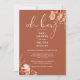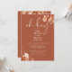 An elegant, stylish baby shower invitation featuring elegant typography and pretty botanical rustic foliage on a terracotta background. Designed by Thisisnotme©