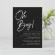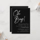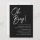 Simple baby shower invitations featuring "Oh Boy!" displayed in a bold white script with a black background. Personalise the minimalist baby shower invitations with the mother's name and shower details. The black and white baby shower invitations reverse to display your pregnancy photo and custom text. The invites are perfect for boy baby showers!