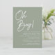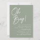 Oh Boy Script Sage Green Minimalist Baby Shower Invitation