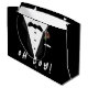Customisable "Oh Boy!" Tuxedo design features the look of a tuxedo on both sides of product. Text is customisable and may be replaced with a name or other wording. Designed to coordinate with the "Oh Boy, It's a Boy!" Baby shower collection.