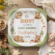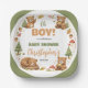 Oh Boy Watercolor Woodland Bear Baby Shower Paper Plate
