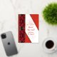 This Christmas card has a banner of poinsettia flowers and greens along the side, accented with foil. Another diagonal banner has the words, “Oh come, let us adore him-Christ, the Lord!” (from the famous Christmas hymn). There is also a faded image of poinsettias in the background. If you appreciate the sacred meaning of Christmas, you’ll enjoy the design of this Christmas card. Blessings.