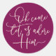 Oh Come Let Us Adore Him script Christmas design Classic Round Sticker