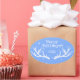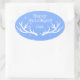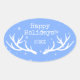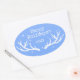 Holiday sticker with an antler design on blue. You can customise the text. Matches other items in the set for a perfect party.