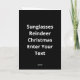 A bold holiday look with a red-nosed reindeer in sunglasses for fun festive attitude.