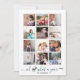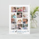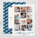 Oh deer what a year in review twelve photo collage blue Holiday Card. A modern Christmas holiday card with a photo collage of twelve photos with grey frame one for each month and the message: "Oh deer, what a year" in blue with a grey deer instead of the word deer. The back includes a pattern of a white deer on blue. All photos except one are of Photography © Storytree Studios, Stanford, CA