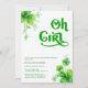 Celebrate a special St. Patrick’s Day baby shower with this charming watercolor invitation. Featuring the stylish text "Oh GIRL" in elegant green tones and delicate Irish clover leaves accenting two corners, this design blends modern minimalism with festive charm. Perfect for honouring the mum-to-be in a unique and eye-catching way.