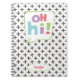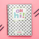 Hi there! This big speech bubble is filled with a fun font to say "oh hi". Lots of colours here with lime green, soft pink, purple and a turquoise blue. Background pattern of grunge plus signs for a rough air. Lovely casual design perfect for teen girls as well as their mothers, grandmothers and aunts.