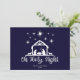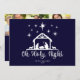 Pretty Oh Holy Night script typography with nativity on a navy blue background with 3 photos on the back as well as a space for your Christmas message. See coordinating items such as wrapping paper, gift tags and more in our shop.