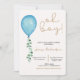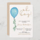 Oh niño beige modernos globos azules bebé invitation