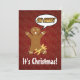 Share some fun and laughs this holiday season with this cute little guy! He's a toasty brown gingerbread man with white icing, who's lost his leg. It snapped off. Brown and dark red background with circle swirls. Cookie is tan brown with white accents, and a yellow pop behind his leg. Customise this funny flat holiday card with your details.