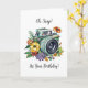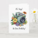 A cute birthday card for a photographer or anyone who loves photography or camera puns. Ai art depicting a vintage camera in pretty flowers.