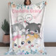 Oh So Girly Cute Happy Kitten Friends Floral Name Fleece Blanket