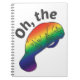 Notebook with a colourful manatee implying "Oh the Hue Manatee" It's a funny play on the famous phrase "Oh the Humanity" uttered by Herbert Morrison, an American reporter, covering the Hindenberg disaster. Since, it's become a popular phrase and rainbow coloured sea cows like this one are popping up everywhere.