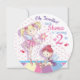 For a little girl turning 2, this cute (Twodles) birthday party invitation features a little girl and her friend, both dressed in ballet costumes and fairy wings. The adorable illustration is painted in soft pastel shades of pink and lilac with touches of lemon and blue. A pink polka dot fills part of the background, while the back of the card is pink with a white polka dot. Little ballet shoes are also on the back of the card with the main invitation text. Both sides of this gorgeous card can be customised.