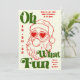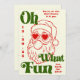 Festive bubblegum blowing Santa, with his heart shaped glasses, is the star of this merry Oh What Fun holiday party invitation.