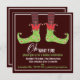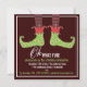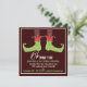 Fun and happy elf feet dance across this invitation that welcomes family and friends to a merry celebration of the holiday! In red, green and brown, this design is sure to bring a smile.