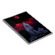 A gothic aesthetic spiral notebook featuring digital artwork of a wolf surrounded by crystals with a blood red moon hanging in the sky behind. The crystals in the artwork are garnet and amethyst. Digital artwork lovingly designed by me 🖤
