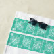 When one martini just won't do and you need more... this sassy beach towel is for you. This whimsical design features three colourful martini glasses with text that read, "OH YEAH...it's that kind of day." The top and bottom, of the towel has a double border of an aqua coloured pattern that accents the main design.