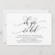 Mark the beginning of your forever with elegance using our contemporary black and white themed wedding elopement celebration invitation card, "Oh yes we did". Perfect for couples extending their joyous occasion, this invitation exudes sophistication with a hint of playfulness, setting the stage for a memorable event. Adorned with a timeless modern script design theme, it adds a touch of refined charm to your festivities. Crafted by TeeshaDerrick, this invitation promises to beautifully capture your love story.