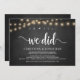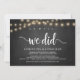 oh yes, we did, Wedding Elopement Announcement / Invitation card, in Rustic farm chalkboard, String Lights design. This is perfect for your wedding reception and post-wedding celebration party. Add your details in matching font / lettering.