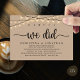 Oh Yes, We Did, Rustic Wedding Dinner Elopement Invitation