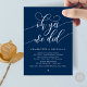 Elegantly announce your happily ever after with our modern navy blue theme wedding elopement celebration invitation card, "Oh yes we did". Tailored for couples continuing their love story, this invitation strikes a perfect balance of sophistication and charm, setting the scene for an unforgettable event. Featuring a modern contemporary script design, it adds a touch of timeless grace to your special day. Designed by the talented TeeshaDerrick, this invitation is a stylish expression of your enduring love.