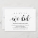 oh yes, we did, wedding elopement reception invitation card. This rustic kraft wedding elopement themed invitation card is perfect for your wedding reception and post-wedding celebration party. Add your details in matching black font / lettering.