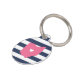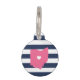 Let your furry friend show some home state pride with this cute Ohio pet ID tag. Design features a white silhouette map of the state of Ohio in pink with a white heart inside, on a preppy navy blue and white stripe background. Add your pet's name and contact information to the back in white lettering on a pink background.