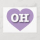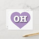 This postcard features a mellow lavender heart containing the bold, white, upper case letters OH, the official abbreviation for Ohio, the buckeye state. The reverse side of the postcard is blank, awaiting your handwritten sentiments or personalised text. Choose font style, size, and colour.