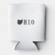This simple buckeye state can koozie features the name of Ohio with the first letter O replaced by the silhouette shape of Ohio.