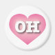 This magnet features a calm, cool, and collected pink heart with a white-washed centre containing the bold, white, upper case letters OH, the official abbreviation for Ohio, the buckeye state.