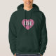 This hoodie sweatshirt features a pink heart containing the bold, white, upper case letters OH, the official abbreviation for Ohio, the buckeye state.