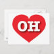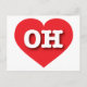 This postcard features a vibrant red heart containing the bold, white, upper case letters OH, the official abbreviation for Ohio, the buckeye state. The reverse side of the postcard is blank, awaiting your handwritten sentiments or customised text.