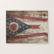 Ohio State Flag on Old Wood Grain Jigsaw Puzzle