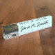 The nameplate looked exactly as pictured, I was very happy with this product! It also arrived promptly after placing my order! I would definitely recommend this product! The printing turned out exactly as I designed it, very pleased!