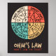 This Ohm's Law formulas wheel will help you memorise the formulas used to calculate power and resistance, current, and voltage. Ohm's Law is a fundamental equation in electronics, in chemistry, and in physics, which gives the relationship between voltage and current in a resistor.