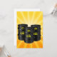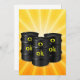 Three black barrels of oil against a yellow background. This design looks really effective on these Invitation