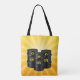 Three black barrels of oil against a yellow background. This design looks really effective on this Tote Bag