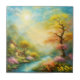 oil paint a spring landscape and tree ceramic tile