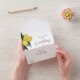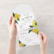 A wedding invitation with Oil painted lemon motif. It has a tearaway rsvp card to make things easier for you and your guests.