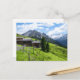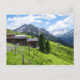 Oil painting illustration of Austrian Alps. Barn. Postcard