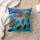 oil painting of boats and sea on canvas. Sunset o Cushion