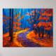 oil painting showing beautiful Autumn forest on canvas. Modern Impressionism