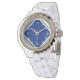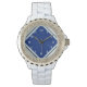 You will definitely look stylish in this watch. Featuring an all-white band, this watch has a royal blue face with white and navy trimming and white numbers.