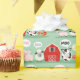 Oink Baa Moo Barn Farm Birthday Party Wrapping Paper. Farm-themed kids' birthday party supplies. Cows, sheep, pigs, roosters, barns, tractors pattern. www.SamAnnDesigns.com