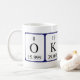 OK spelled out as O K (Oxygen Potassium) on a mug for the scientist in you.